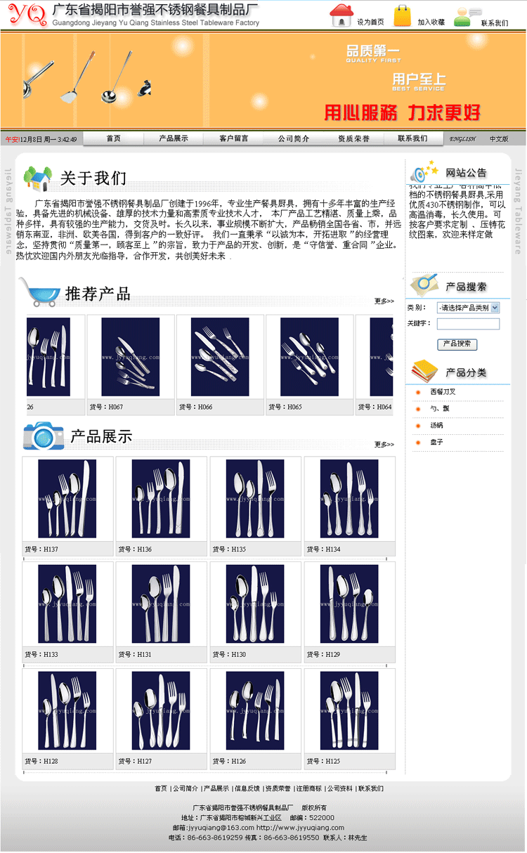 广东省揭阳市誉强不锈钢餐具制品厂专做餐具贸易