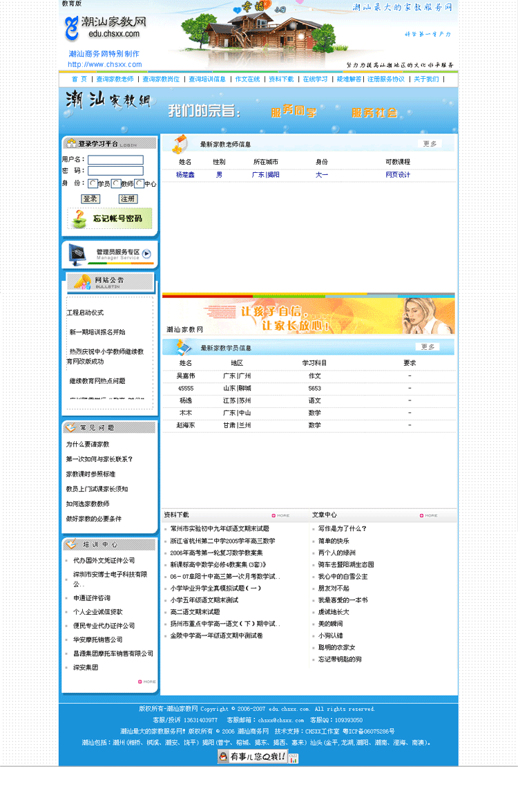 潮汕家教网-->揭阳创鑫网络科技有限公司的家教网 ,转让中...网址:http://edu.chsxx.com/